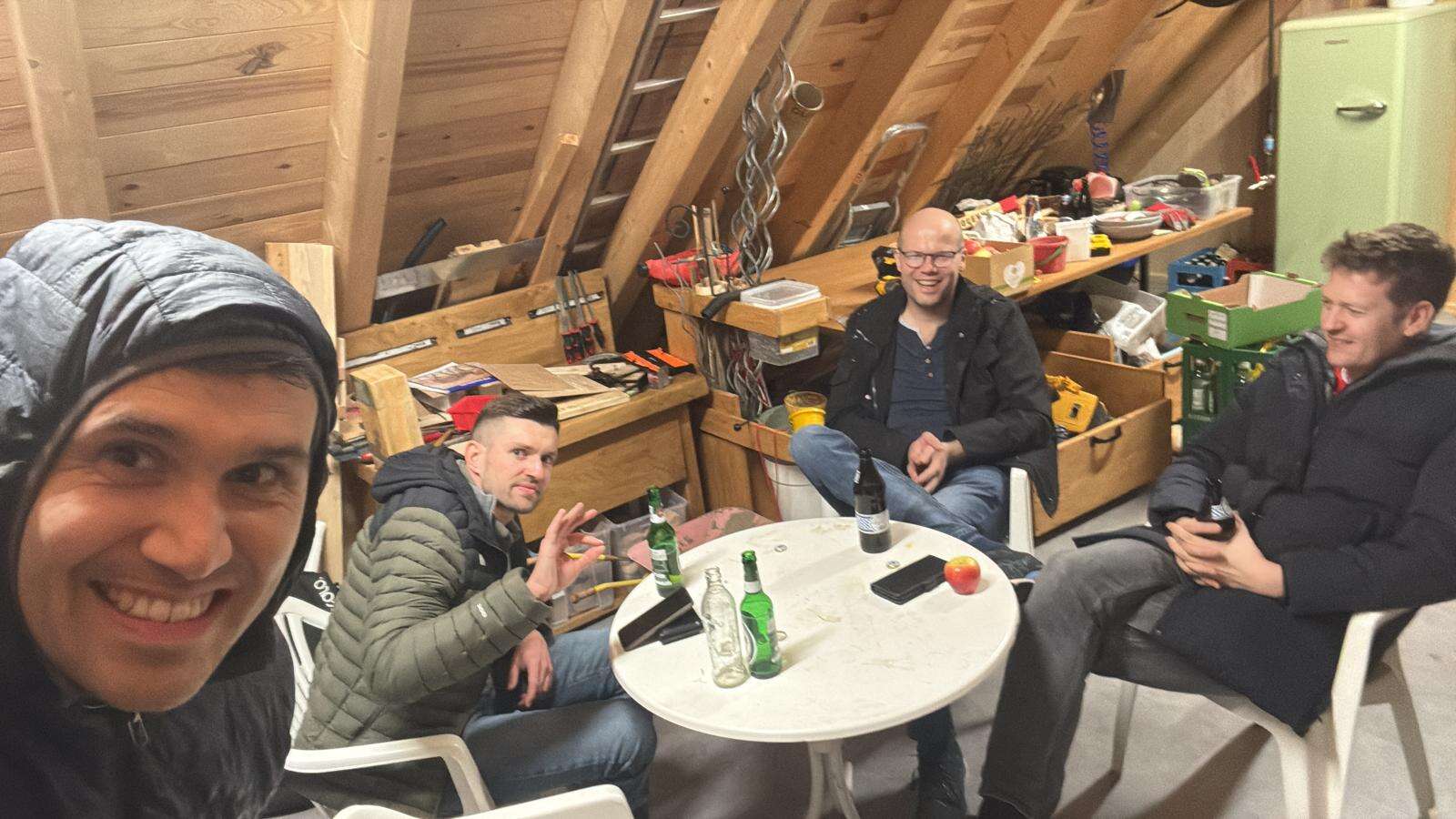 Weil die Stimmung so heiter war – und weil ein Punkt in Wilhelmsdorf eben gebührend gefeiert werden will – verlagerte sich der Abend schließlich auf Flo’s Dachboden-Garage. Dort, zwischen Werkbank und Werkzeug, klang der Spieltag spät und würdig aus.