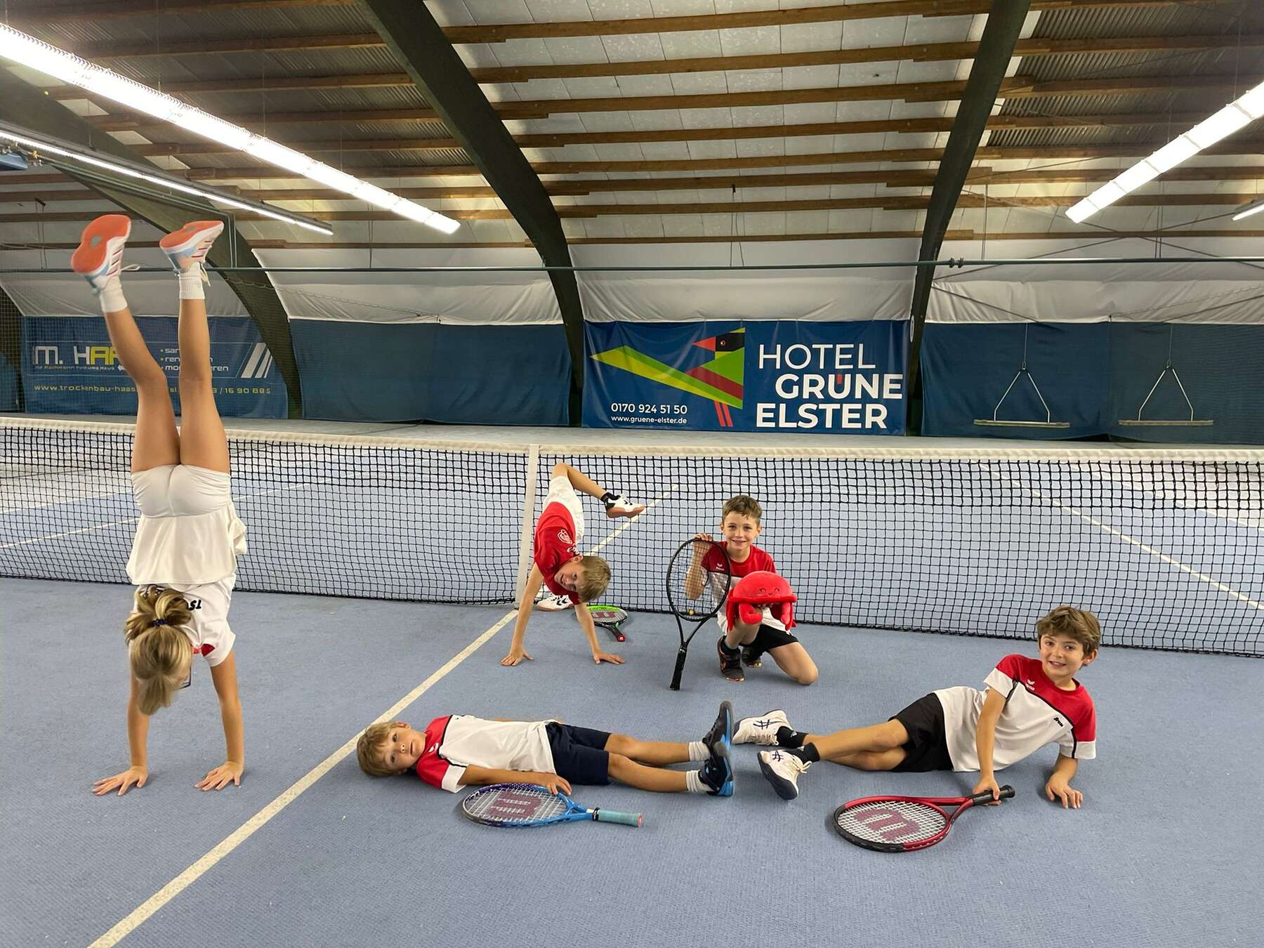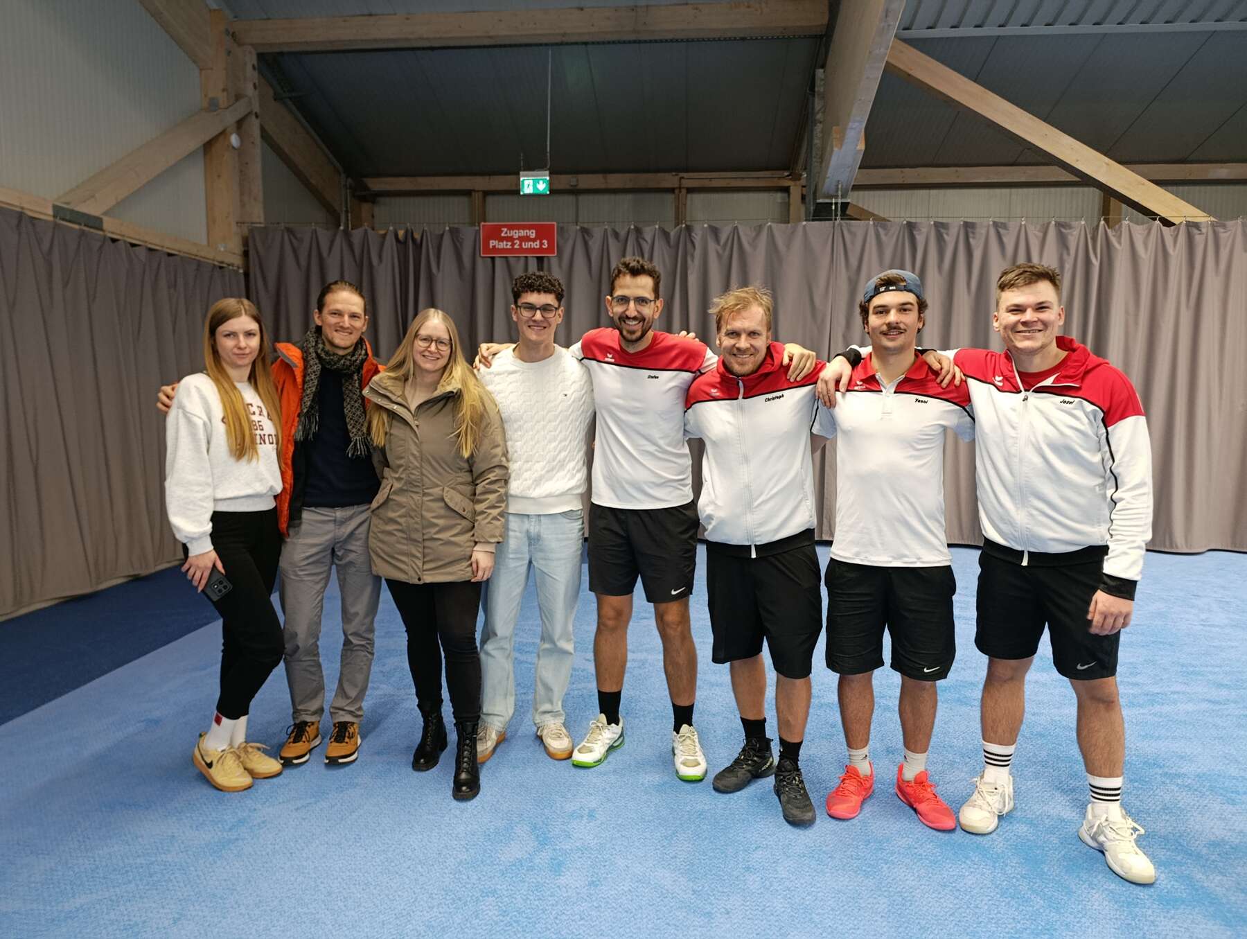 Beim TCN angekommen, führte das Einlaufen durch die geringe Deckenhöhe und die fehlende Koordination unserer Damen fast zum ersten Knock-Out.