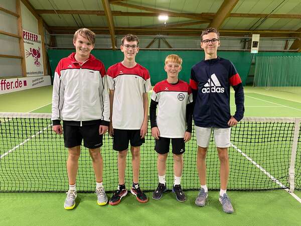 Luca Schipke konnte in seinem Einzel einen Sieg mit 6:0 und 6:4 einfahren. An Position 2 unterlag Joschua Bauer seinem Gegner leider eindeutig mit 1:6 und 2:6. Ben Eberhardt tat sich gegen seinen Gegner ebenfalls schwer und verlor mit 2:6 und 3:6. Doch Paul Lieb, der an Position vier spielte, konnte das Spiel eindeutigen mit 6:0 und 6:0 für sich