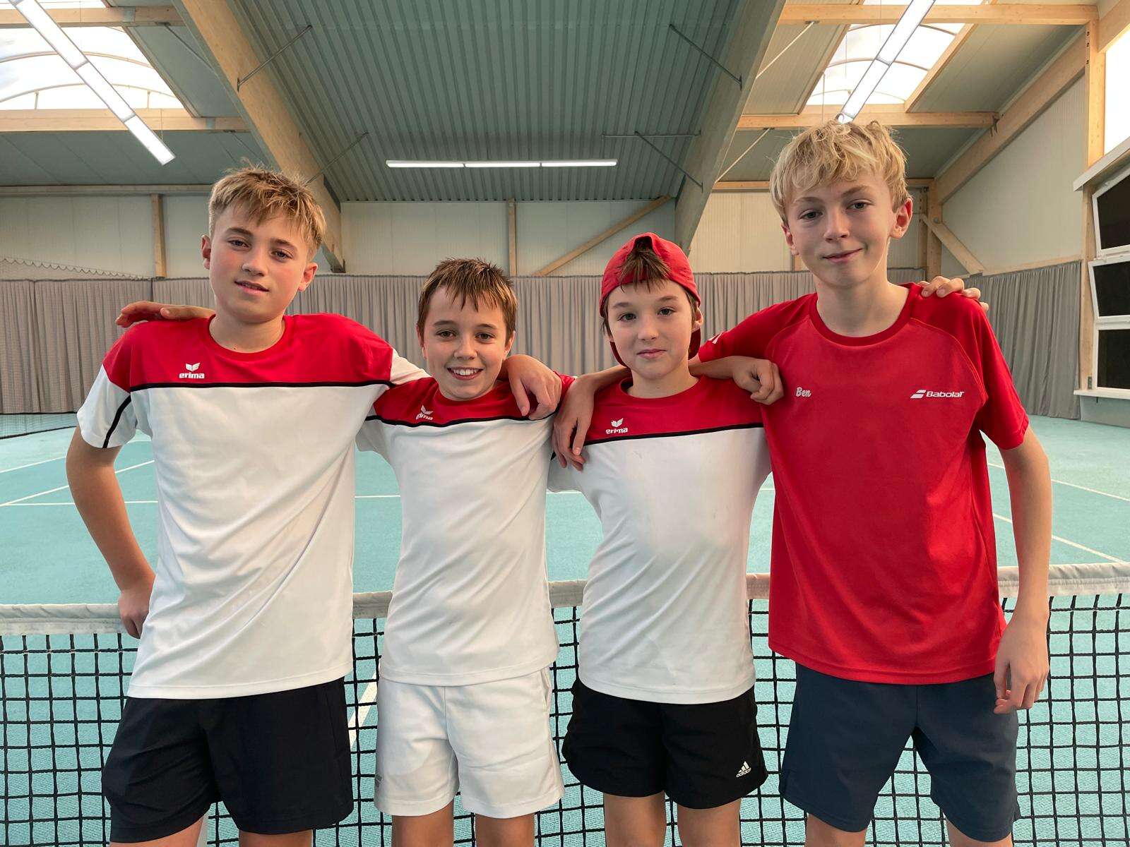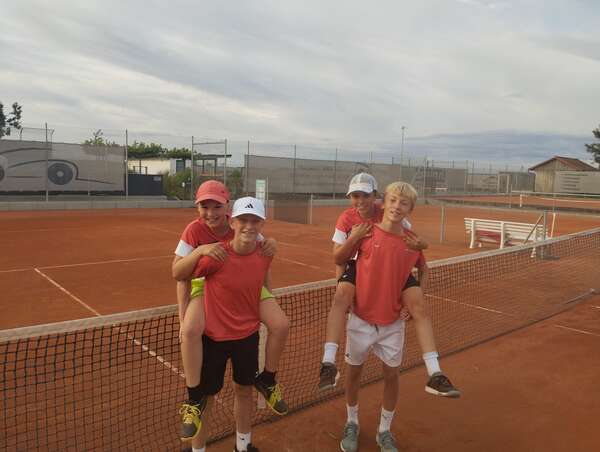 Bereits in den Einzeln legte das Team den Grundstein für den späteren Gesamtsieg. Toni setzte sich souverän mit 7:5 und 6:1 durch. Luzi musste sich trotz kämpferischer Leistung mit 3:6 und 1:6 geschlagen geben, doch Louan (6:1, 6:0) und Ben (6:1, 6:1) stellten mit zwei klaren Siegen den Zwischenstand von 3:1 nach den Einzeln her.