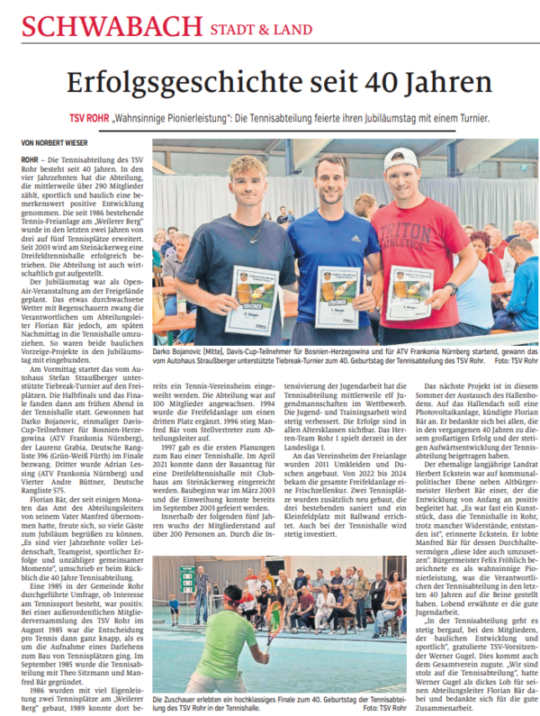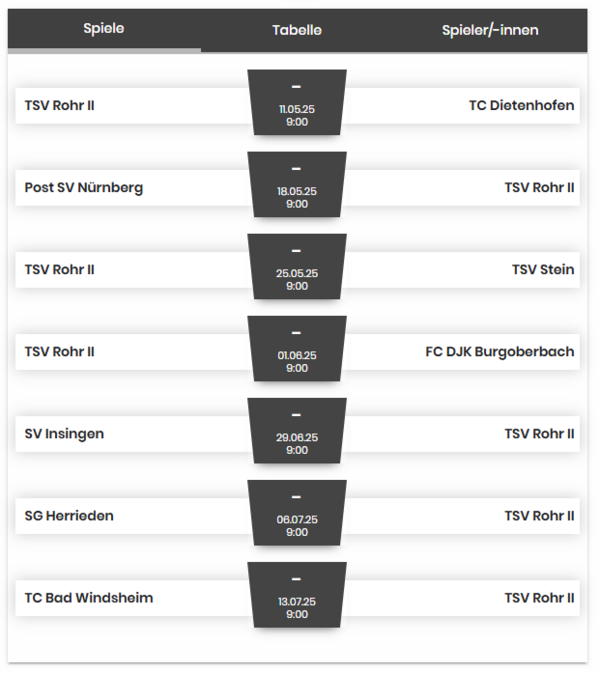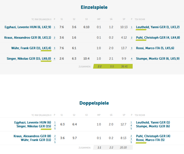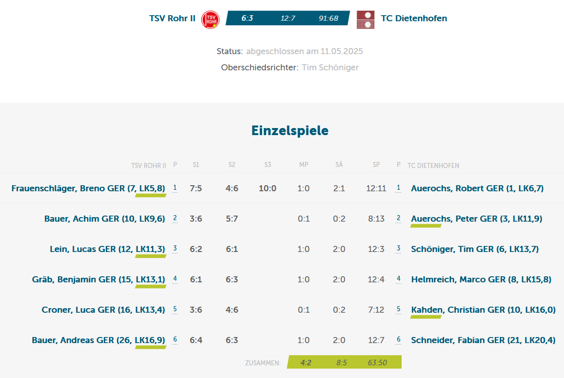 Am Ende stand ein klarer 6:0-Erfolg für den TSV Rohr. Ein starker Heimauftritt im Sportpark Fürth mit spannenden Matches und einer geschlossenen Mannschaftsleistung.