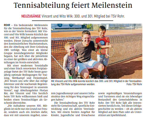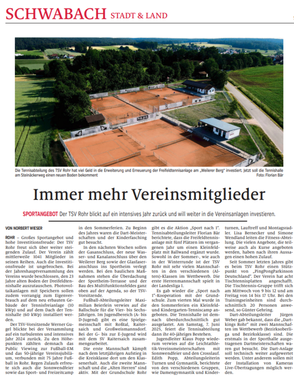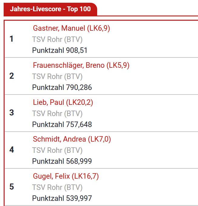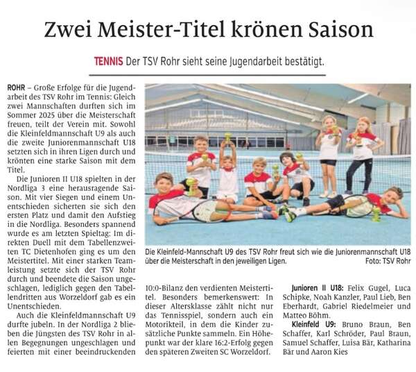 Mit einer geschlossenen Mannschaftsleistung, vielen klar gewonnenen Matches und großem Einsatz auf allen Positionen sicherte sich der TSV Rohr damit einen verdienten und souveränen 5:1-Gesamtsieg.