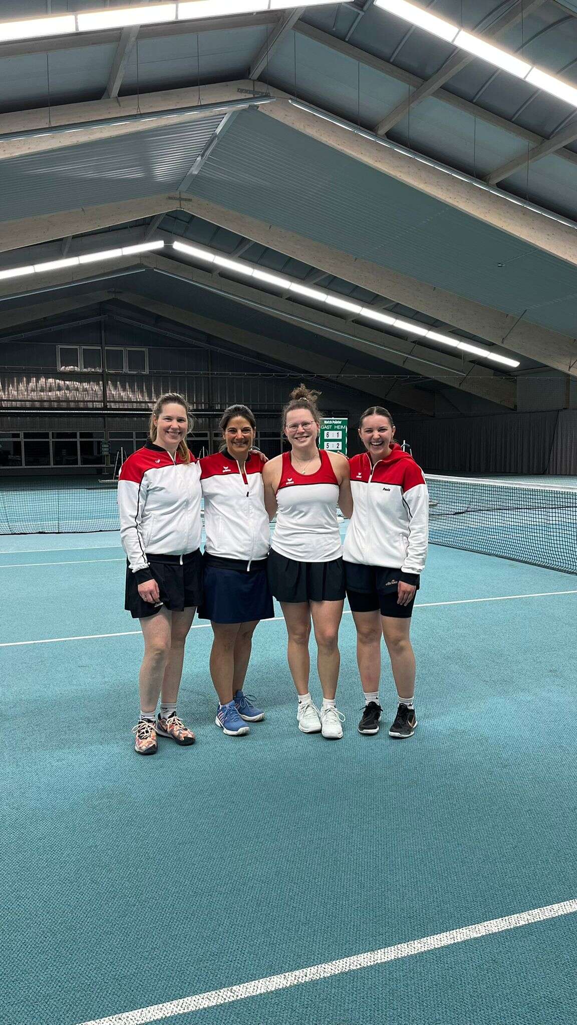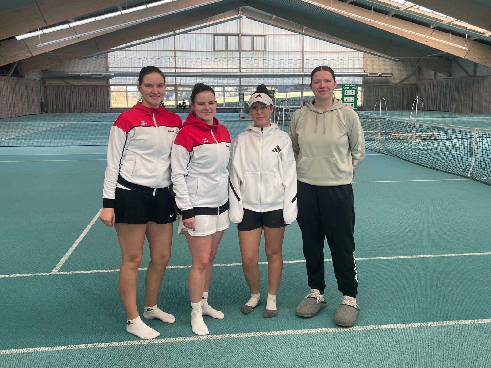 Am 16.11.24 hatten die Damen 1 ihr zweites Saisonspiel in der heimischen Halle. Nach kurzer Absprache mit den Gegnern begannen die Einzel mit den Positionen 2 und 3, also Ida und Kathrin. Ida gewann deutlich mit 6:2 6:1 dank verunsicherter Gegnerin und holte den ersten Punkt für Rohr. Währenddessen kämpfte Kathrin auf dem Nebenplatz. Trotz grandioser Spielweise unterlag sie ihrer laufdominanten Gegnerin knapp im Matchtiebreak mit 9:11. Somit stand es 1:1. In der zweiten Runde gingen Andrea und Lisa an den Start. Andrea hatte zum ersten Mal eine gleichscharf spielende Gegnerin auf der anderen Seite des Netzes, welche zu Beginn eine echte Herausforderung für sie darstellte. Nach einem Rückstand von 1:4 erkämpfte sie sich doch noch den ersten Satz mit einem 7:5 und ging dadurch mit einem guten Gefühl in den zweiten Satz. In diesem schenkten sich die beiden Rivalinnen weiterhin nichts. Trotzdem war das Ergebnis mit einem 6:3 für Andrea schon eindeutiger. Lisa ließ ihrer Gegnerin währenddessen keine Chance und gab nur ein Spiel pro Satz ab. Somit stand es für den TSV 3:1 mach den Einzeln.
