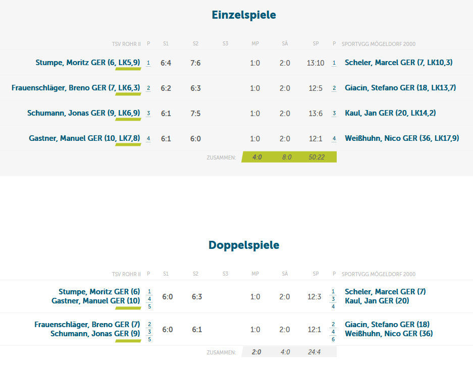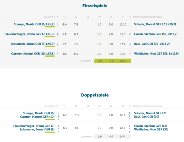Mit einer 4:0-Führung ging es in die Doppel. Auch hier blieb Rohr erfolgreich: