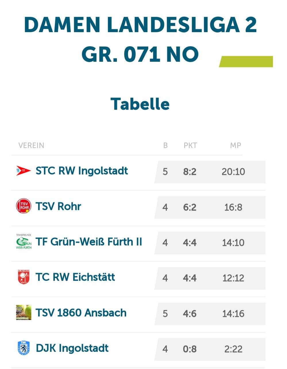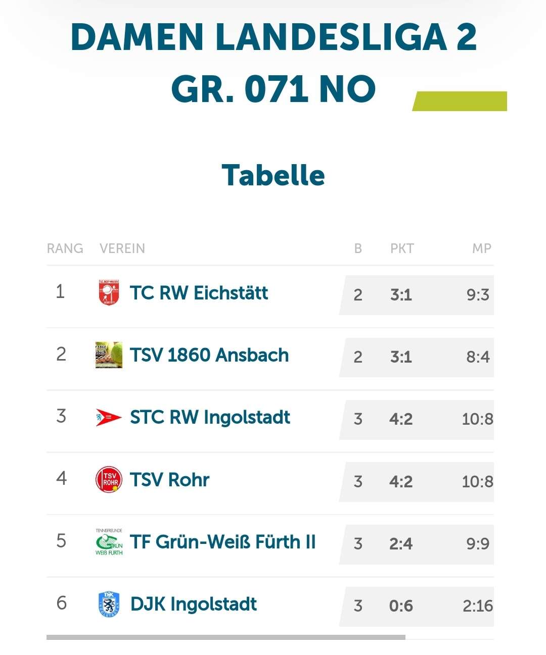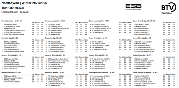 Unsere beiden weiteren Herrenmannschaften sind in der Nordliga 1 und Nordliga 3 vertreten. Die 2. Herren startet am 9.11. zuhause gegen den SV Schwaig/Nürnberg, die 3. Herren am 20.10. ebenfalls zuhause gegen Altmühlgrund. Unsere 2. Damen sind wie unsere 3. Herren in der Nordliga 3 anzutreffen. Das erste Spiel ist am 1.12. gegen den TC Rückersdorf.