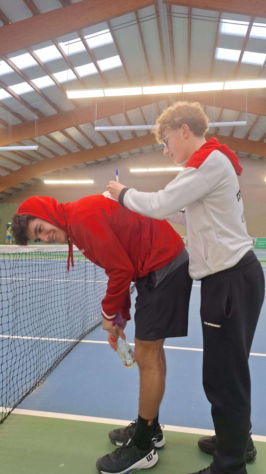 Entsprechend geknickt waren die Jungs schon vor den Doppeln. Doch da wussten sie noch nicht, dass ihnen noch schlimmeres bevorstand. Es wurden nochmal alle Kräfte mobilisiert, um ein Unentschieden zu erwirken. Yanni und Moritz sollten das 1er-Doppel, Josef und Breno das 2er-Doppel für den TSV holen.